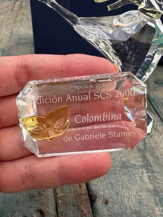 Figura de cristal de Swarovski, modelo Colombina de Gabriele Stamey edición anual para coleccionistas. - Diseño detallado de bailarina. - Detalles en amarillo. - Incluye placa conmemorativa “Colombina” - Año 2000 - Con su caja original