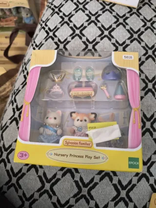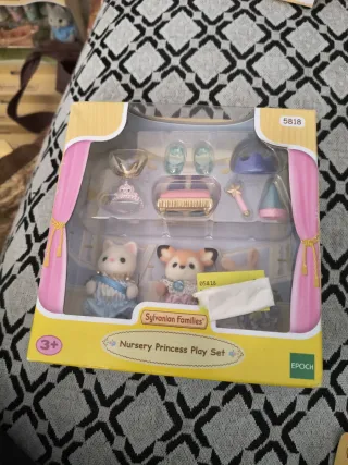 Set de juego Sylvanian Families Nursery Princess Play Set. - Incluye dos figuras de animalitos. - Accesorios temáticos de princesa como tiara, zapatos y trono. - Ideal para recrear escenas de cuento.