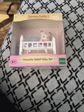 Set de Sylvanian Families, el Chocolate Rabbit Baby Set. - Incluye figura de conejo bebé. - Cuna blanca con cajones. - Edad recomendada: 3+ años. - Marca: Epoch.
