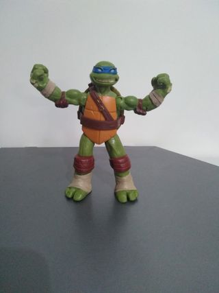Figuras de la serie de Nickelodeon de 2012 de las tortugas ninja. Leonardo es de unos 18cm y tenia un mecanismo que emitía sonidos que ahora no funciona. Las figuras de Slash son las figuras básicas de acción. La mas alta es la de la linea Mutations y la mas pequeña es la normal.