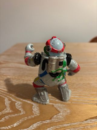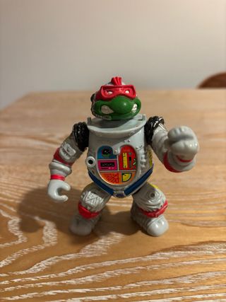 Figura de acción de las Tortugas Ninja (TMNT). - Diseño inspirado en el espacio. - Detalles en color rojo y gris. - Cara verde con máscara roja.