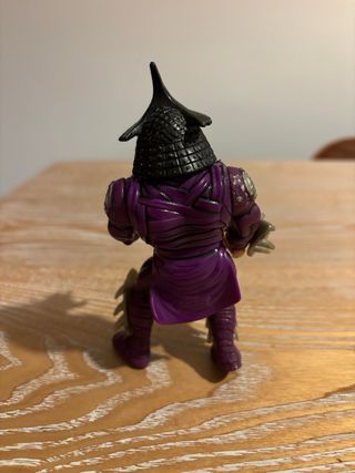 Figura de acción del villano Shredder de las Tortugas Ninja. - Detalle de armadura y capa. - Colores morado y azul característicos.