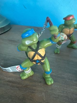 Tortugas Ninja. - Figura de Leonardo con bandana azul. - Figura de Raphael con bandana roja. - Cada figura está sobre su base con el nombre grabado. 1€ cada una.