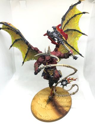 Figura de Bloodthirster pintada a mano, lista para exhibir o jugar. - Detallado trabajo de pintura. - Base escénica incluida. 40k daemons warhammer Warhammer age of sigmar 40000 40,000 40.000 aos demonios chaos caos khorne