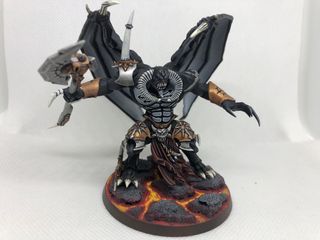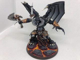 Figura de Príncipe Demonio de Warhammer. - Pintado a mano. - Base temática de arena y lava. 40k warhammer Warhammer 40000 40.000 40,000 aos age of sigmar daemons tzeentch slaanesh nurgle khorne wargames