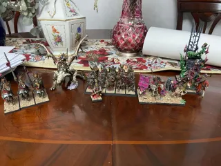 Colección de miniaturas del ejército de Condes Vampiro para Warhammer Fantasy. - Incluye un dragón. - Varias unidades de caballería y a pie. - Figuras detalladas para coleccionistas y jugadores.