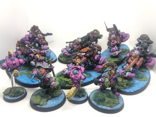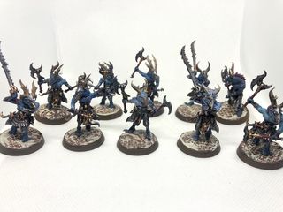 Unidad de 10 Tzaangors pintados a mano, listos para la batalla. - Figuras de fantasía. - Pintura detallada. - Peana detallada y personalizada 40k 40000 40.000 40,000 age of sigmar aos tzeentch mil hijos disciples sons warhammer Warhammer wargames daemons