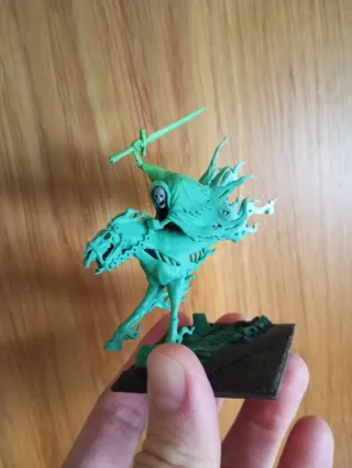 Figura de Reikenor, el Guardián de las Almas, de Warhammer Nighthaunt. Una pieza detallada para coleccionistas. - Montado sobre un corcel espectral. - Portando una guadaña. - Detalles en oro y rojo intenso.