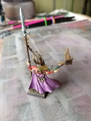Figura de Araloth, Elfo Silvano de Warhammer. - Detallado diseño con armadura y capa. - Incluye lanza y ave. - Base texturizada. Warhammer, fantasy, old world