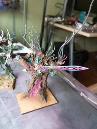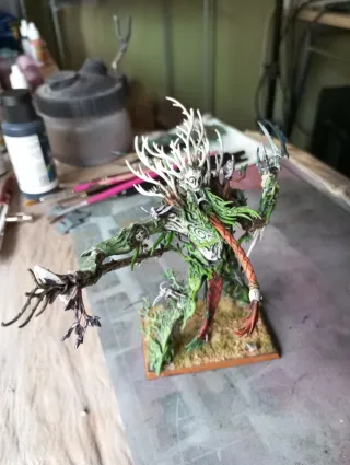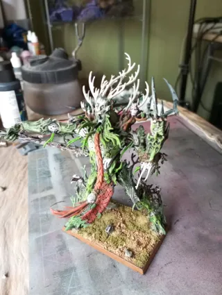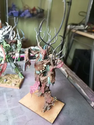 Figura de Hombre Árbol de Elfos Silvanos, ideal para coleccionistas. Original de Games Workshop - Detallado diseño inspirado en la naturaleza. - Pintura artesanal con tonos verdes y blancos. - Base escénica con vegetación. Warhammer, fantasy, old world, tow