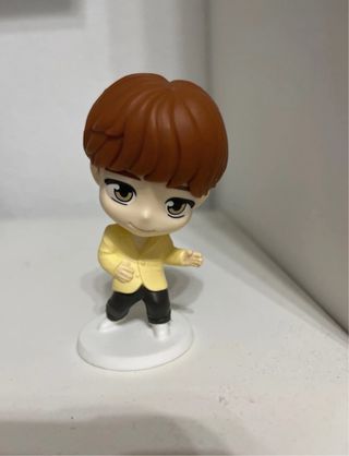 Figura coleccionable de BTS. - Diseño chibi. - Ropa amarilla y pantalón negro. De mcdonalds