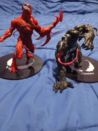 Pack de figuras de los personajes de Marvel, Venom y Carnage. Perfectas para coleccionistas. - Figura de Venom - Figura de Carnage - Bases temáticas incluidas. Son desmontables los brazos y la cabeza de cada uno de ellos.