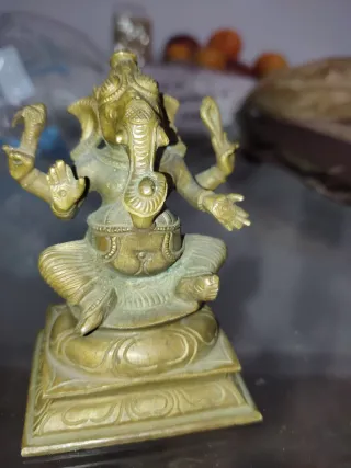 Bonita figura hindú de Ganesha. Ideal para decoración bonita pequeña y pesa - Material: Bronce. - Diseño detallado.