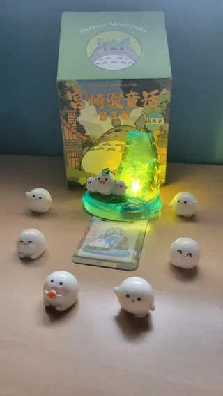 ¡Lleva la magia de Miyazaki a tu escritorio! ✨🌱 ¿Alguna vez has deseado vivir en un mundo de fantasía? Estos pequeños espíritus del bosque están listos para acompañarte. 🏮 Colección inspirada en los mundos de Hayao Miyazaki ¡Precioso set de warawaras (2,5x2cm) acompañados de una luz de warawaras en la cascada (7cm) Ideal para decoración de estantes, escritorios o terrarios. Estado: Nuevo, incluye caja original un poco chafada y tarjeta de autenticidad. Contenido: 1 Escenario de cascada + 6 mini figuras de warawaras con diferentes expresiones y accesorios. Diseño: Acabado brillante y colores vibrantes que capturan la ese