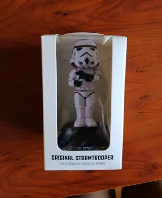 Figura coleccionable de un Stormtrooper de Star Wars. Funciona con energía solar. - Diseño detallado del personaje. - Base negra con texto. - Figura de Star Wars.