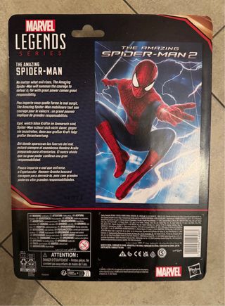 Figura de acción de Marvel Legends de The Amazing Spider-Man 2. La figura está en su empaque original. - Basada en la película The Amazing Spider-Man 2. - Incluye accesorios intercambiables.