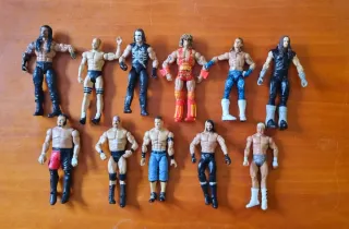 Colección de figuras de acción articuladas de luchadores de la WWE. Sólo las figuras no tienen complementos. Se pueden vender en forma individual. Dolph Ziggler Seth Rollins John Cena Stone Cold Samoa Joe The Undertaker Shawn Michaels Ultimate Warrior Sting Antonio Cesaro Roman Reigns. ( le falta la mano ) - Fabricadas por Mattel. - Diseños detallados de varios luchadores. - Articulaciones para posar las figuras.