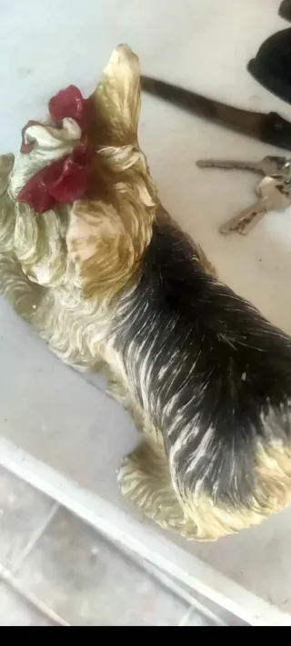 Figura decorativa de un perrito Yorkshire. Medidas 25 cm aproximadamente , ideal para decoración - Hecho de cerámica. - Detalles en color rojo en la cabeza.