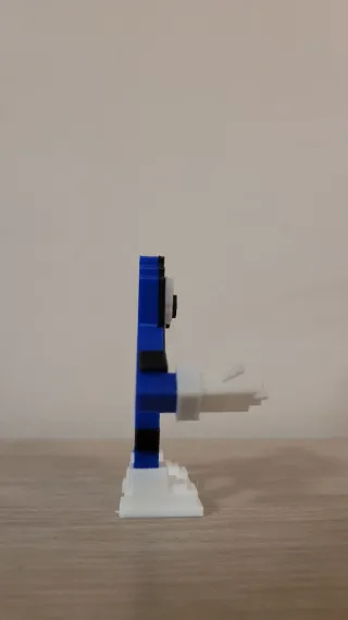 Figura decorativa con el número 67, diseñada con un estilo pixelado y robotizado. Sus colores principales son el azul, blanco y negro. Aproximadamente 7cm. - Diseño inspirado en videojuegos retro. - Ojos redondos y blancos con pupila negra. Se hacen por encargo. Pide el tuyo!