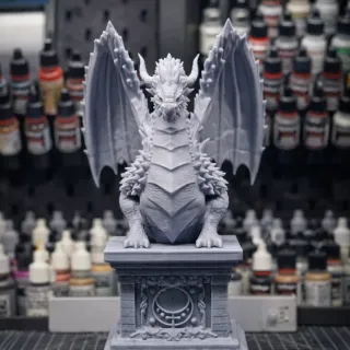 Figura detallada de un dragón sobre un pedestal. - Diseño inspirado en el Castillo de Hades. - Material gris, listo para pintar.