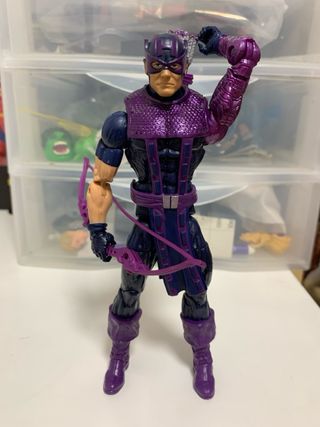 Figura de acción de Hawkeye de la línea Marvel Legends. - Diseño inspirado en el personaje. - Incluye arco y carcaj con flechas. - Color morado y azul.