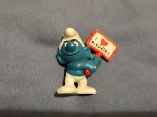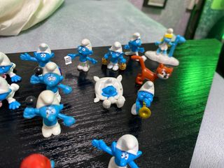 Lote de figuras de PVC.precio a negociar ,la mejor oferta se lo lleva. - Figura de un Smurf jugador de rugby. - Figura de un Smurf con un cartel. - Figura de una Smurf bruja volando en escoba.