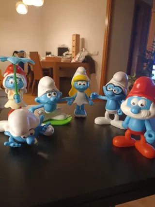 Lote de 6 figuras de los Pitufos. Cada figura mide aproximadamente 14 cm. - Figuras de los personajes de los Pitufos. - Altura aproximada de 14 cm por figura.