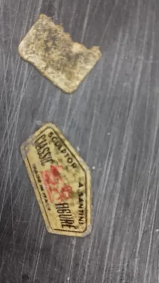 Figura decorativa de metal con un diseño detallado, montada sobre una base de madera. - Material: Metal - Base: Madera Pesa bastante