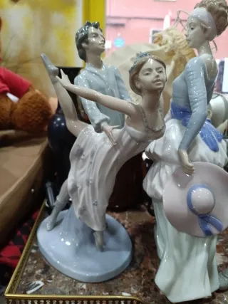Figura de porcelana con un estilo delicado y elegante, reminiscentes de la artesanía de Lladro. - Figura de bailarines en pose.