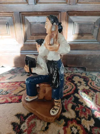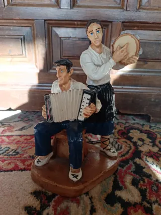 Figura decorativa de estilo vasco, representando a músicos. - Altura aproximada de 21.50 cm. - Detallada representación de vestimenta y instrumentos.