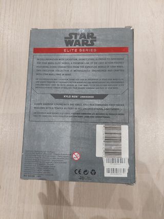 Elite Series, comprado en el Disney Store. Nunca sacado de la caja. Figura metálica de Kylo Ren Unmasked de Elite Series. Códigos de barras pegados en la parte trasera de la caja. Caja trotada, con roces, de las mudanzas. Comprada en las antiguas tiendas fisicas Disney Store.