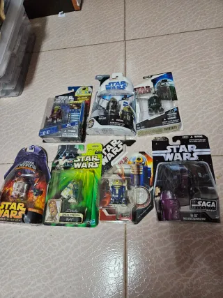 Conjunto de figuras de acción de droides de Star Wars. - Incluye varios droides icónicos de la saga. - Empaquetados individualmente para coleccionistas. No separo