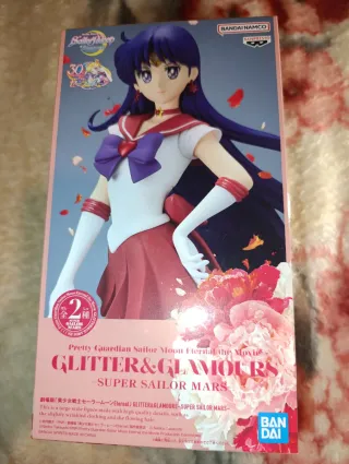 Figura de Super Sailor Mars de la colección Glitter & Glamours, por Bandai Spirits. Basada en la película "Pretty Guardian Sailor Moon Eternal, The Movie". Fabricada en PVC y materiales de alta calidad y von diseño de alto detalle. Mide aprox. 23 cms. Se encuentra en perfecto estado, en su embalaje original (la figura se encuentra dentro de su envoltorio sellado). Especial para coleccionistas.