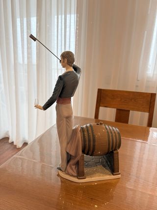 Figura de porcelana de Lladro que representa a un joven con un barril. Una pieza decorativa con un diseño detallado. - Figura de porcelana. - Representación de un joven. - Incluye un barril. Caja iriginal