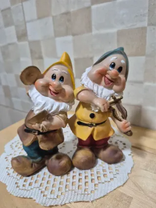 En buen estado.2 adornos de cerámica, son figuras de enanitos, ideales para coleccionistas o decoración.Pintados en efecto biscuit. - Uno diseño con platillos y otro con violin. - Diseño detallado y colorido. - Material: Cerámica.Altura 14-15cm.