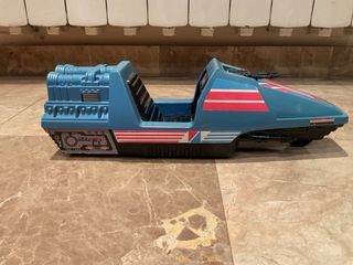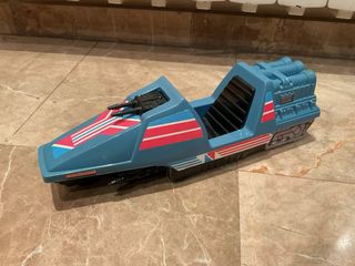 Vehículo Laser Raider de Big Jim de 1983. De Mattel, año 1983, buen estado, mide 33 cm de largo, conserva sus armas superiores e inferiores asi como sus pegatinas originales. Estado como se ve en las fotos. - Incluye dos torretas frontales. - Asiento para figura. - Diseño de orugas en la parte trasera.