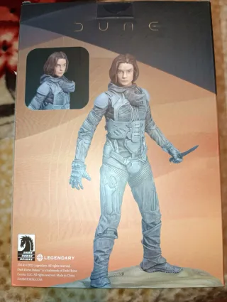Figura de Lady Jessica de la película Dune. De The Dark Horse Comics. Figura coleccionable. Diseño detallado. Temática desierto y crys-cuchillo. Destiltraje Fremen. Se envía en su embalaje original (presenta algún daño externo). Figura de PVC de unos 23 cms alto aprox. Nuevo en su embalaje.