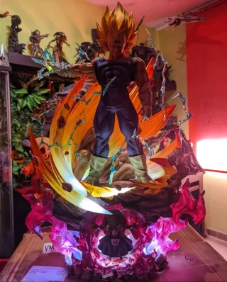 Figura de colección de Majin Vegeta, marca figure Class V1. -luces funcionando, caja exterior y de arte. Todo en perfecto estado a excepción de la cabeza extra, que se cayó y tiene los desperfectos que se pueden apreciar en las fotos. La figura es la versión ex, que incluye 2 cabezas. La de la sonrisa está perfecta. - Detallado diseño del personaje. - Base con efectos de energía y llamas. - dragon ball