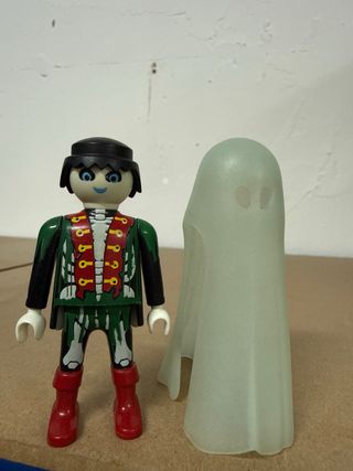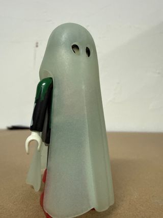 Figura de Playmobil con diseño de fantasma. La figura tiene un acabado translúcido que le da un aspecto etéreo. - Figura de Playmobil. - Diseño de fantasma. - Material translúcido.