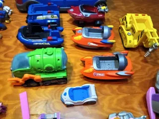 Colección de vehículos y figuras de la Patrulla Canina. - Incluye diversos vehículos de rescate. - Varias figuras de los cachorros. - Juguetes de plástico de colores vivos.