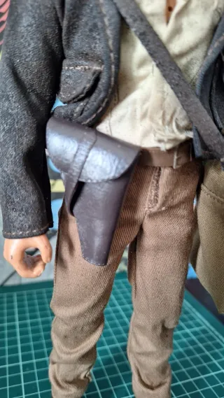 Figura de acción interactiva con sonidos personalizada de Indiana Jones, ideal para coleccionistas. Habla al pulsar el botón delantero funcionando a pilas perfectamente - Incluye sombrero, chaqueta y látigo. - Detalle de bolsa con artefacto. - Pistola en funda lateral.