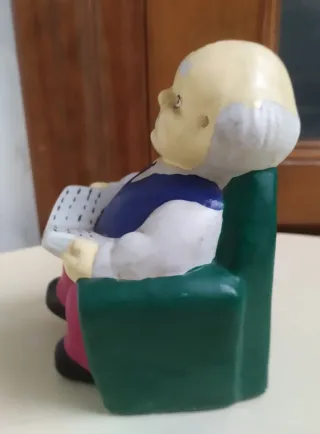 Hucha cerámica anciano sentado leyendo, mide 12 cm