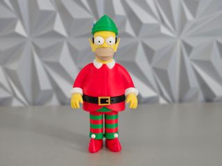 Figura de Homer Simpson con traje de elfo, impresa en 3D. Ideal para coleccionistas o decoración. - Diseño inspirado en personaje de The Simpsons. - Colores: rojo, verde y amarillo.