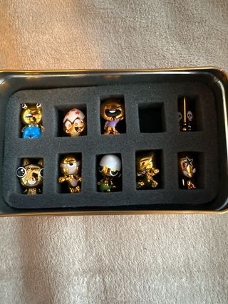 Colección de figuras Gogo's Crazy Bones. - Incluye 9 figuras. - Figuras doradas con detalles de color. - Presentadas en caja con compartimentos.