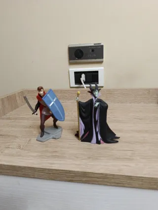 Colección de figuras de personajes de Disney. - Figura de Maléfica con su icónico vestido negro y cuernos. - Figura del Príncipe con espada y escudo azul. 3€ cada uno