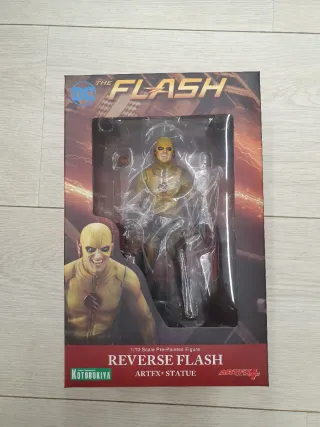 Kotobukiya lanza esta estatua de unos 16.5 cm de The Reverse Flash dentro de la colección Art FX+, basada en su apariencia en TV (la serie). La estatua está hecha de PVC, esculpida con detalles muy realistas. Sus ojos se pueden encender y cambiársele el escudo - Personaje: Reverse Flash. - Marca: Kotobukiya. - Línea: ARTFX+ STATUE. - Escala: 1/10. - Licencia: DC Comics.