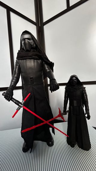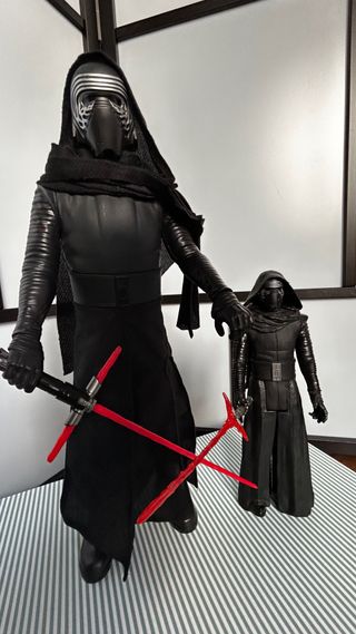 Dos figuras de Kylo Ren, una grande y otra más pequeña. - Figura grande de Kylo Ren.(2015).45cm. - Figura pequeña de Kylo Ren.30cm. - Incluyen sables. - Estan impecaples.