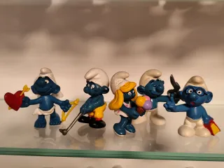 Conjunto de figuras de Pitufos. - Incluye 5 figuras. - Diseño temático de San Valentín. - Pitufos con accesorios como corazón, flecha, helado y libro.