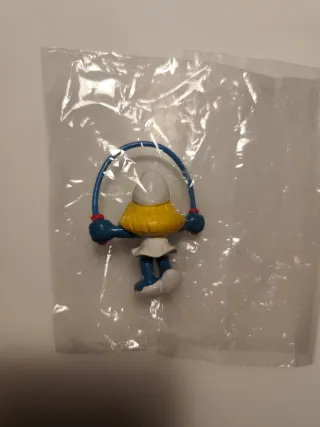 Figura de Pitufo con una cuerda para saltar. Es un pequeño juguete coleccionable. - Figura de plástico azul. - Incluye cuerda de saltar. - Detalle de ropa blanca y gorro.