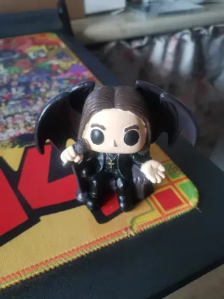 Figura coleccionable de Ozzy Osborne. Tipo Funko pop - Diseño inspirado en el icónico cantante. - Incluye alas y micrófono. - Detalle de collar con cruz.